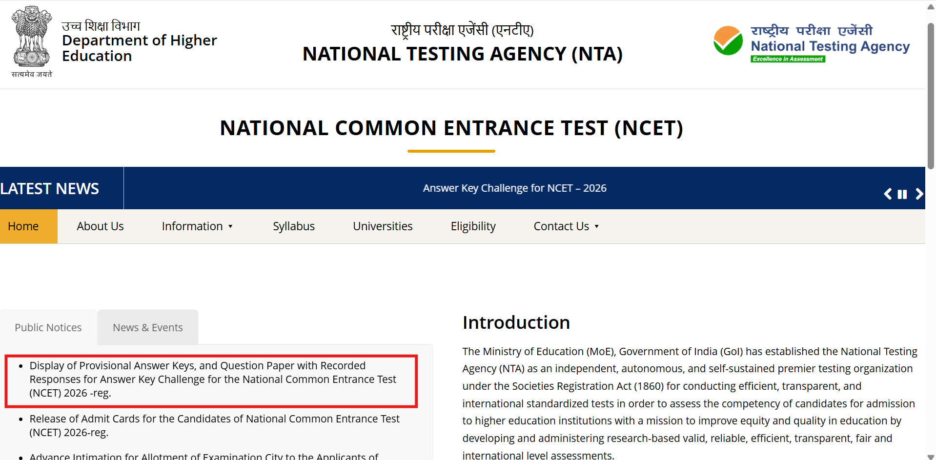 NTA NCET 2026 answer key released at exams.nta.nic.in: Check direct link and objection details